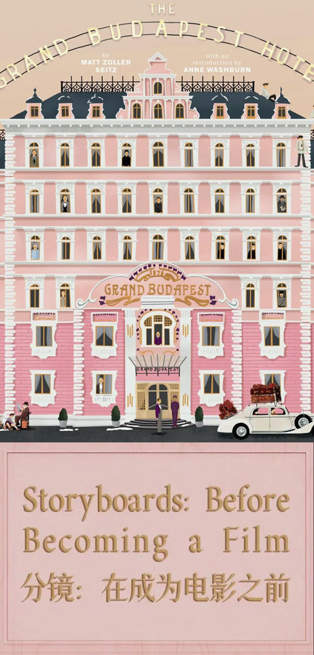 韦斯·安德森无疑是当代电影界视觉风格最鲜明的导演之一,他的视觉风格总是带着极强的平面设计感和强迫症式的秩序感,而他构建的影像世界则更像一个脱离了现实宇宙的立体童话书。展览里展出了《布达佩斯大饭店》的动画分镜,以一种未上色的导演剪辑版的动画短片的形式出现,从这个分镜中,我们也能一窥韦斯·安德森视觉控制狂式的风格在电影制作流程中的延伸。