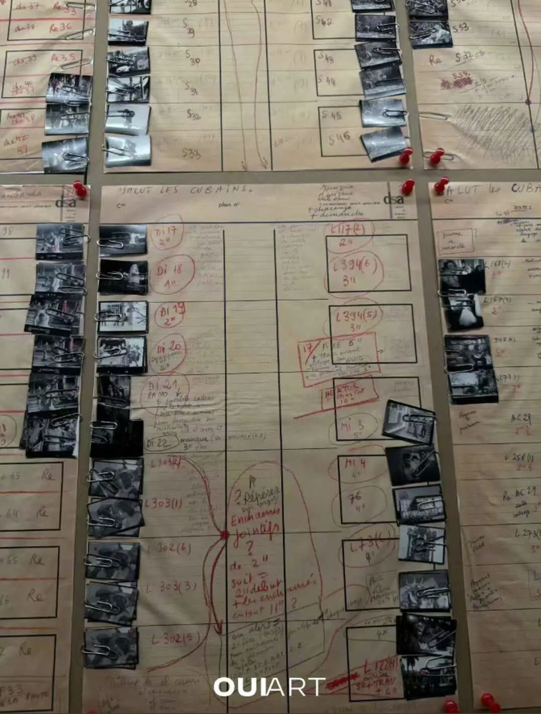 在古巴停留的几个月期间,她拍摄了4000多张照片,并从中选出1800张照片制作成分镜册子或者说图片叙事档案。这部电影本质上已经脱离了传统电影的活动影像的叙事逻辑,本质上是一部由静态照片拼合而成的照片蒙太奇电影。展览中展出的分镜档案,可以看到瓦尔达为了让静止的画面在电影中产生动感,将不同角度的照片像连拍模式一样分解了动作的连续步骤,让静态的照片在最终的短片里产生了节奏感极强的切分音效果。