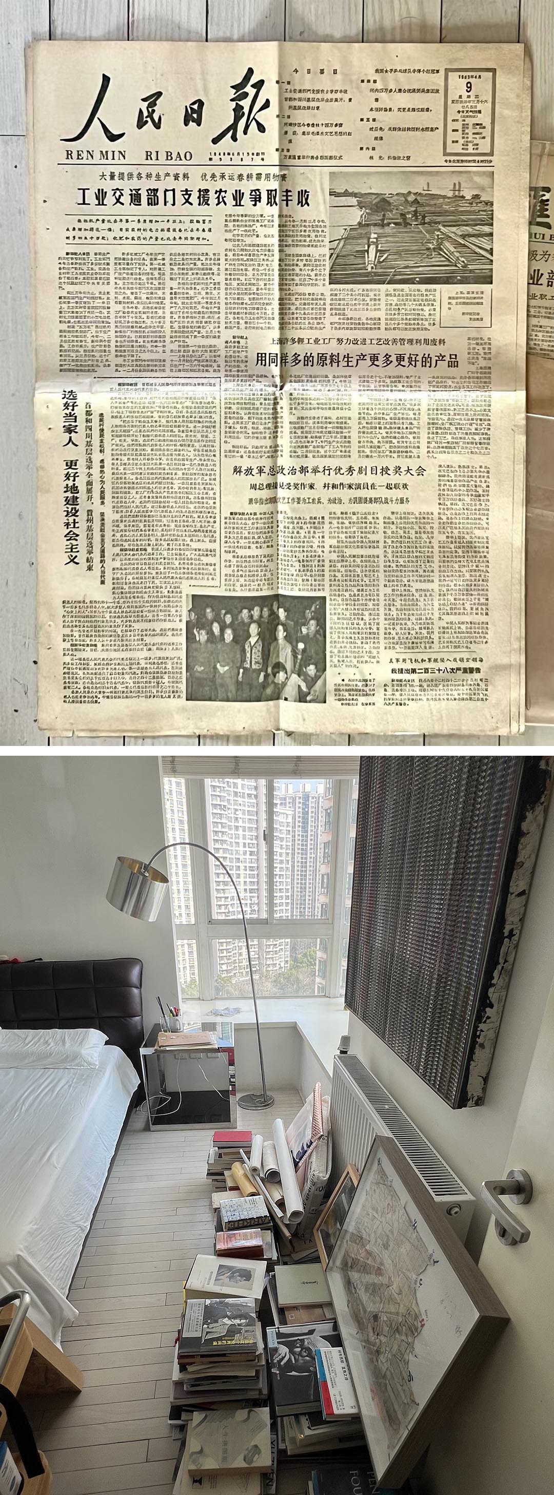 我现在对过年没什么感觉。以前过年时的那种愉悦的状态自从上海巿内不准放鞭炮后就不再有了。不过,每次过年前我总喜欢把卧室里堆满书藉的窗台重新整理一下,今年也不例外。有意思的是每次整理中总会惊喜不断。这次整理中居然从一堆书藉中又重新找到了若干年前从网上订购到的那张报纸,因为那是一张与我同年同月同日生的《人民日报》。