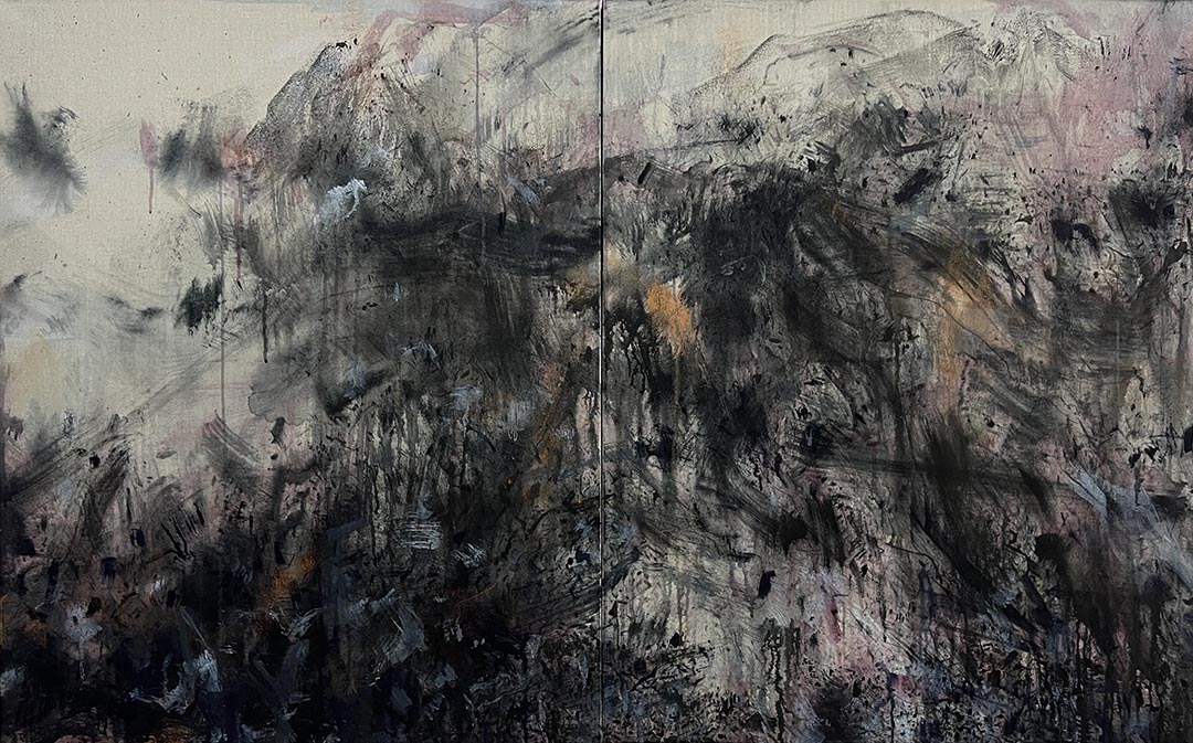 这件未完成的作品,还未有明确的作品名字;是在我对中国绘画墨法(颜色)的再认知的基础上,再度向笔法的实践过程中。