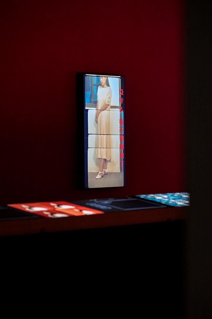 今年终于完成了《〈酒后〉之后》,并于集美·阿尔勒发现奖单元以综合影像的形式呈现。这部作品由《酒后》与《之后》两个故事组成。《酒后》改编自凌叔华出版于1925年的同名短篇小说,采用彩色16毫米于武汉大学西迁旧址乐山龙神祠与乐山文庙取景拍摄,最终的作品分别以十七个静态摄影灯箱与“戏中戏”的动态录像方式出现在展览中;《之后》由一个三频4K彩色影像与三联张静态摄影共同构成,讲述了一对夫妻看戏《酒后》所发生的故事,并以双屏的结构提供了两个不同的叙事走向。