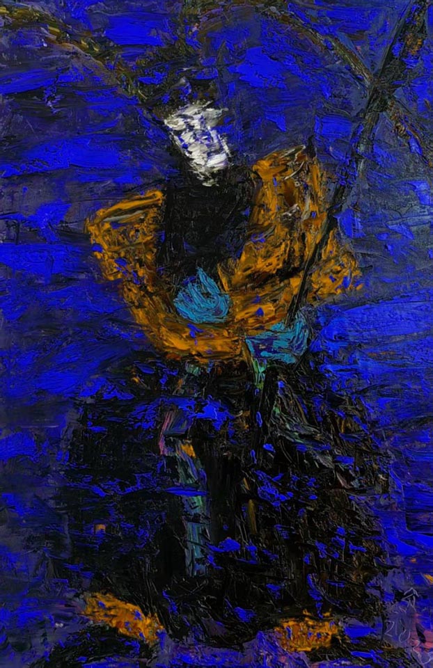 屯堡老孃孃,模糊的面孔,承载历史的厚重;蓝色的调性,远方神秘的存在。